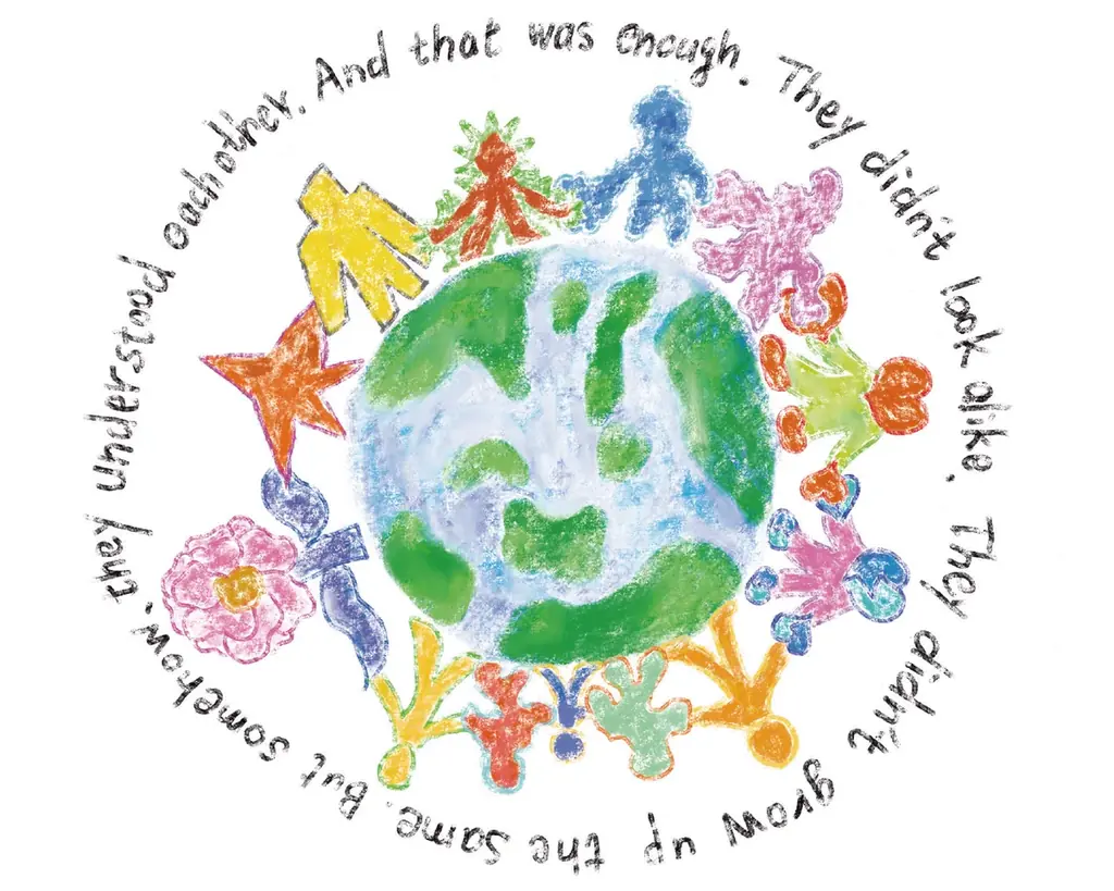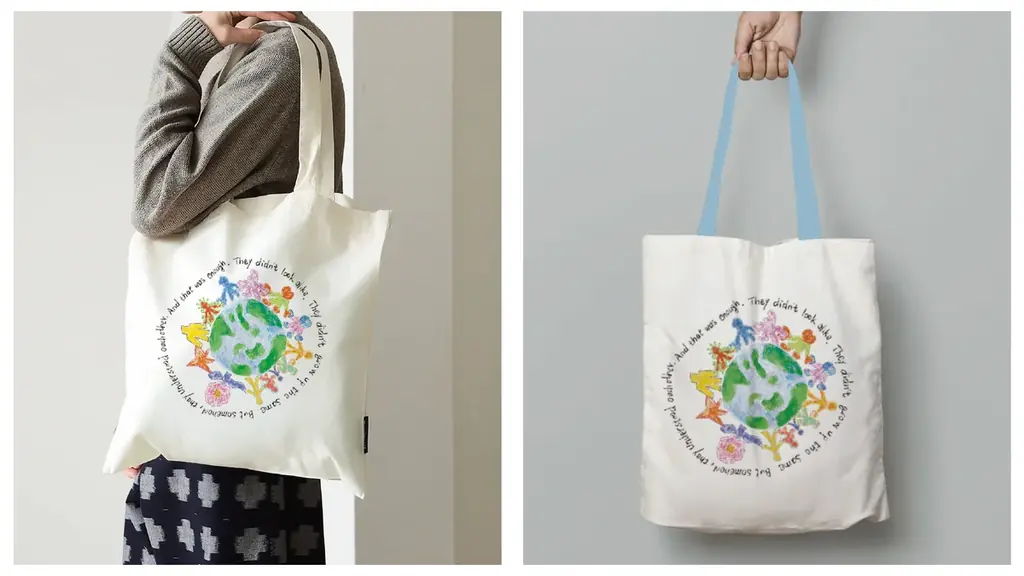 トートバッグのデザインコンセプトは「買った自分も、その先にいる子どもたちも、心温まるバッグ」です。少年たちが描いた絵をもとにしたグラフィックには、見た目や育ちが異なっても通じ合えるというメッセージが込められています。デザインに添えられた英文メッセージは、”They didn’t look alike. They didn’t grow up the same. But somehow, they understood each other. And that was enough.” という表現で、その日本語訳は「彼らは見た目も違った。育った環境も違った。でもなぜか、通じ合うことができた。それで十分だった。」です。