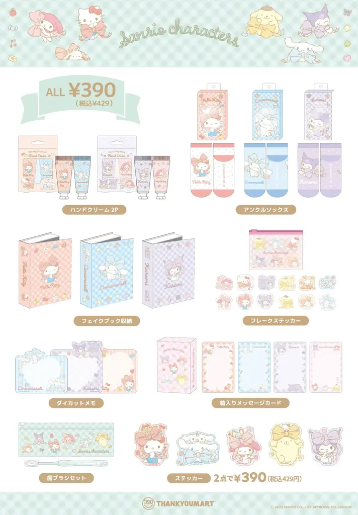 本シリーズはすべてのアイテムが全品390円(税込429円)で提供される「サンキュープライス」のライン。学生を含む幅広い層に支持されるキャラクターたちを、手頃な価格でギフト用途にも使える形で展開する点がポイントです。