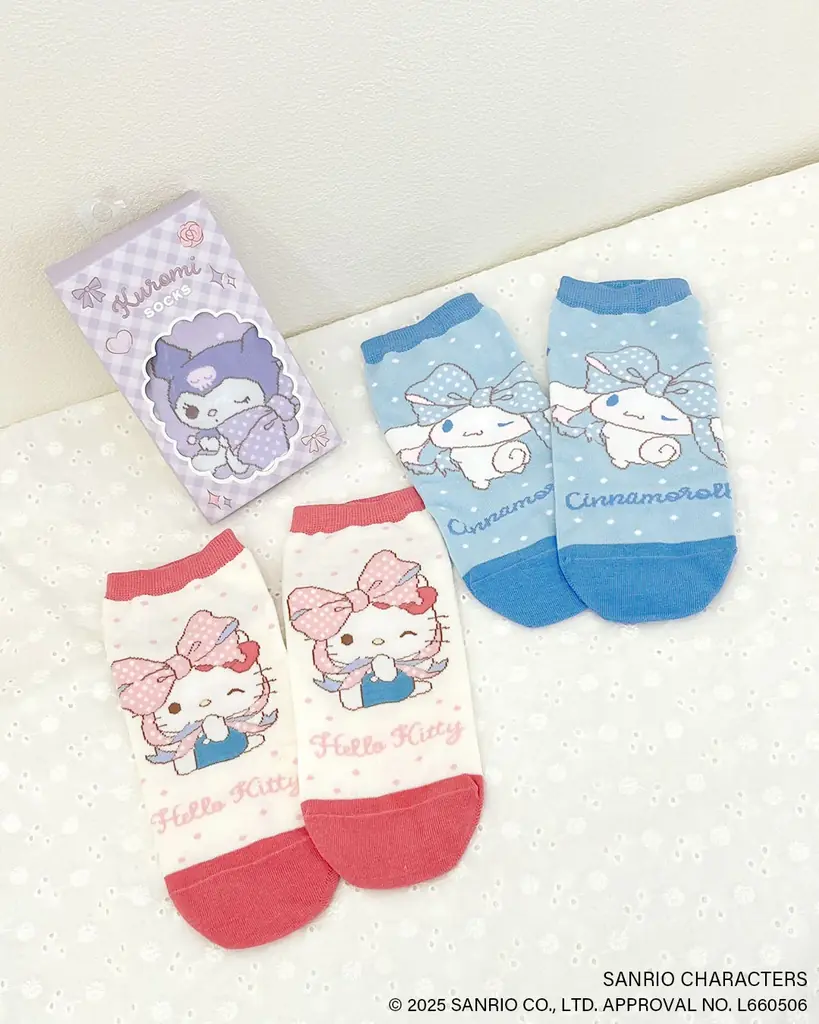 - アンクルソックス/各390円(税込429円)— キャラクターがリボンとともにあしらわれたデザイン。キュートな箱入りで、そのままギフトとして渡せます。