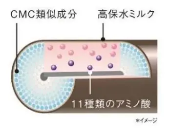 - 浸透美容液成分(CMC類似成分※3:ダイズステロール、11種のアミノ酸※4)を高保水ミルク※5中に閉じ込めた“美容液 in ミルク処方”。