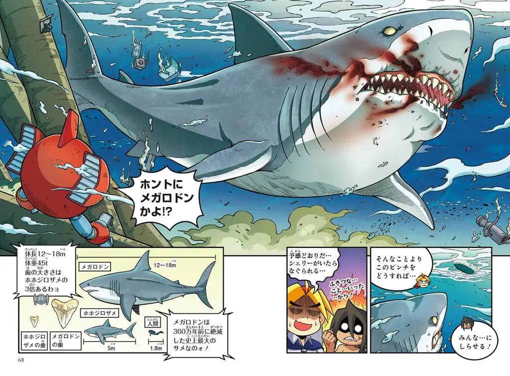 メガロドン復活の海洋バトルを描く学習まんがが発売