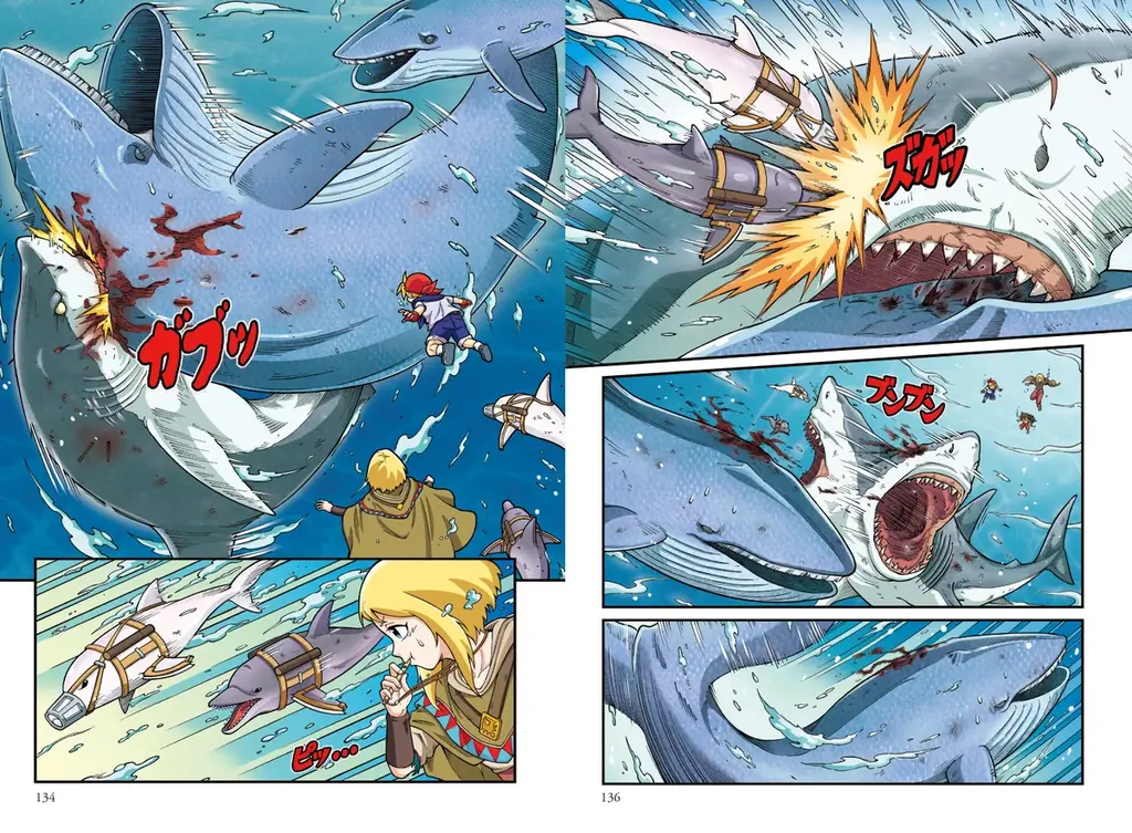 本作の物語は、ジェイクを中心とした「Xベンチャー調査隊」が舞台となり、大西洋のある海域での調査が描かれます。ホホジロザメの行方を追ううちに、古代の巨大ザメ・メガロドンの復活、現生最大級のシロナガスクジラ、さらに武装したイルカ部隊らが参戦することで、海上での大規模な衝突が発生します。物語は調査隊の視点から緊迫した展開となり、科学的解説を交えつつ読み応えのあるストーリーが展開されます。
