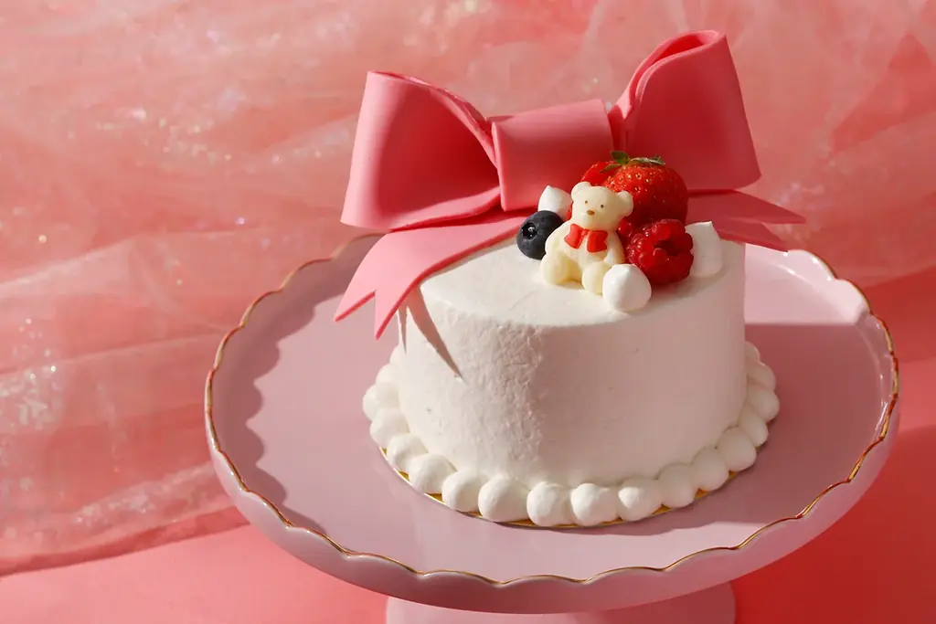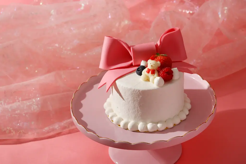 テイクアウト専用の『ピンクリボンショートケーキ』は、ザ ストリングスで既に人気の苺ショートケーキをベースに、大きなピンクのリボンとホワイトベアをデコレーションしたビジュアルが特徴です。