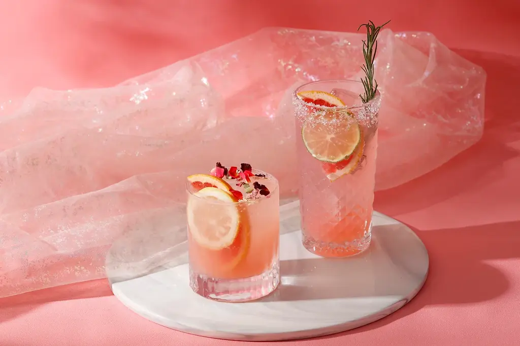 『ピンクグレープフルーツ&ローズレモネード』はピンクグレープフルーツとレモネードを合わせ、ローズのエディブルフラワーをあしらった香り豊かなノンアルコールドリンクです。アルコールを控える方にも見た目と香りで楽しめる選択肢を提供しています。
