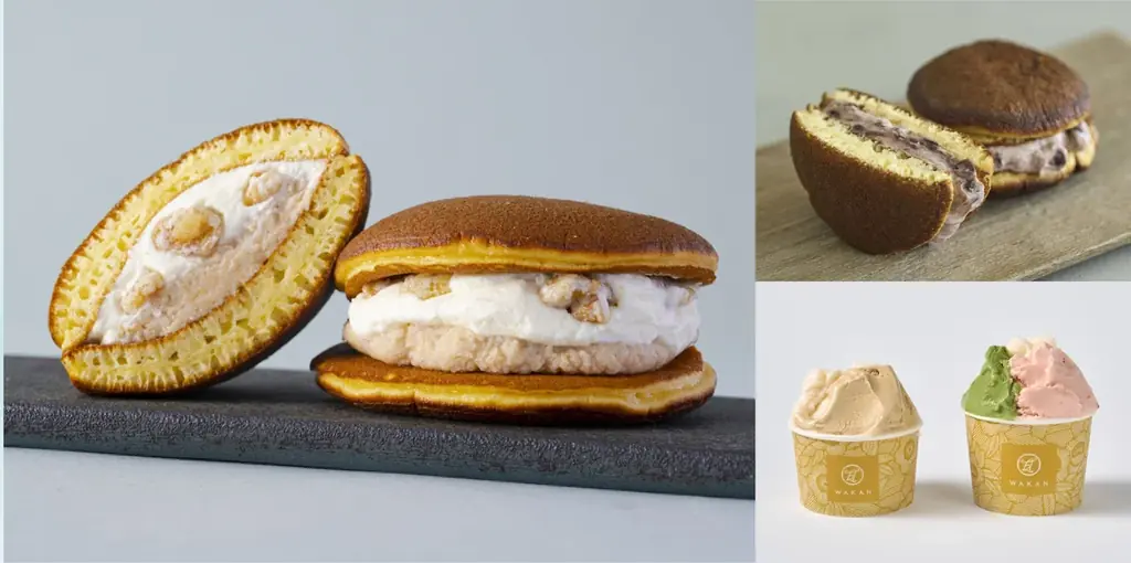 生どらやきは職人が銅板で目の前で焼き上げる“ライブ感”が特徴で、和の伝統と洋の素材を組み合わせた和洋折衷の商品開発が行われています。和ジェラートは練乳、和三盆、ほうじ茶、抹茶などの定番に加え、季節限定フレーバーも用意されます。