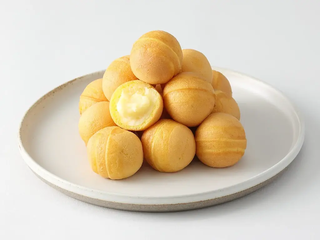 - お月見カスタード(ギンザ プティ カスタ、エキュート大宮):1個 50円(写真は14個で700円)。卵型のひとくちサイズ・プレーン生地に濃厚カスタードを閉じ込めた商品。