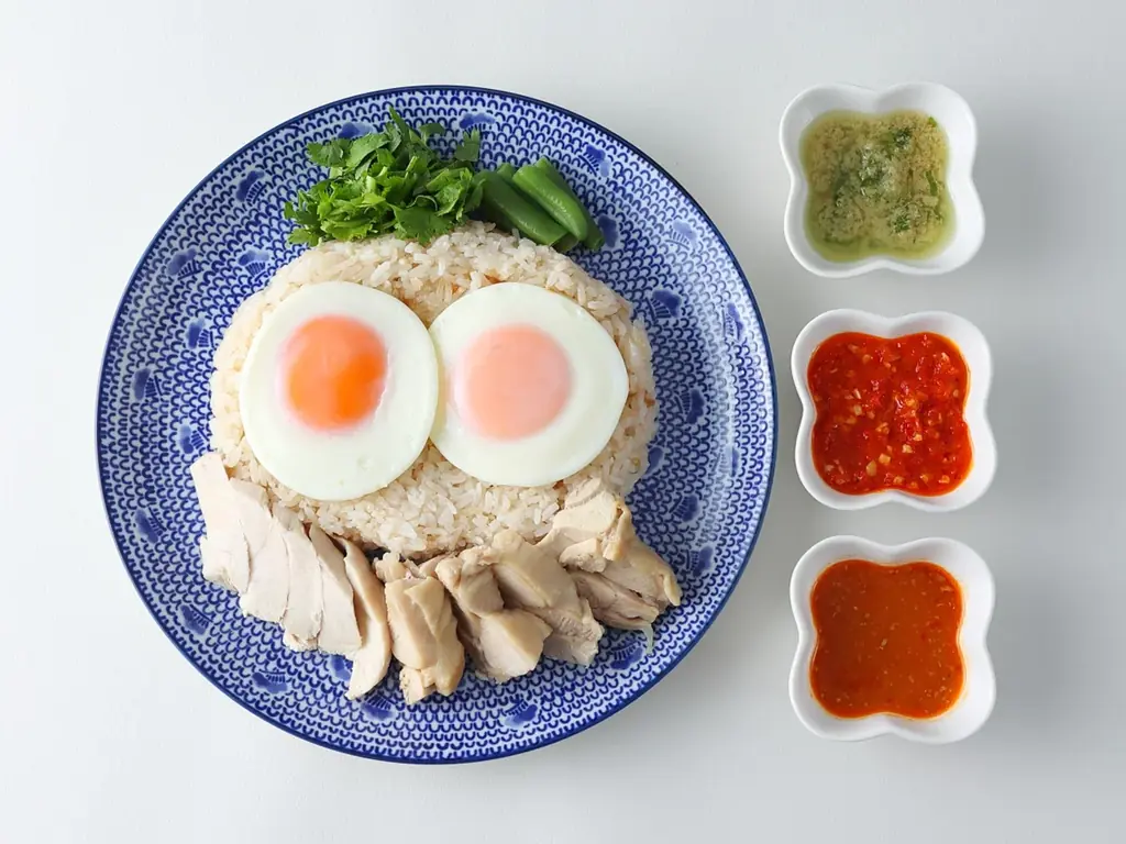 - お月見カオマンガイ(カオマンガイ キッチン、エキュート大宮、イートイン限定):1,320円。人気のカオマンガイに目玉焼きを2つ添えたセット。数量限定(1日10食)、販売時間は10:00から。