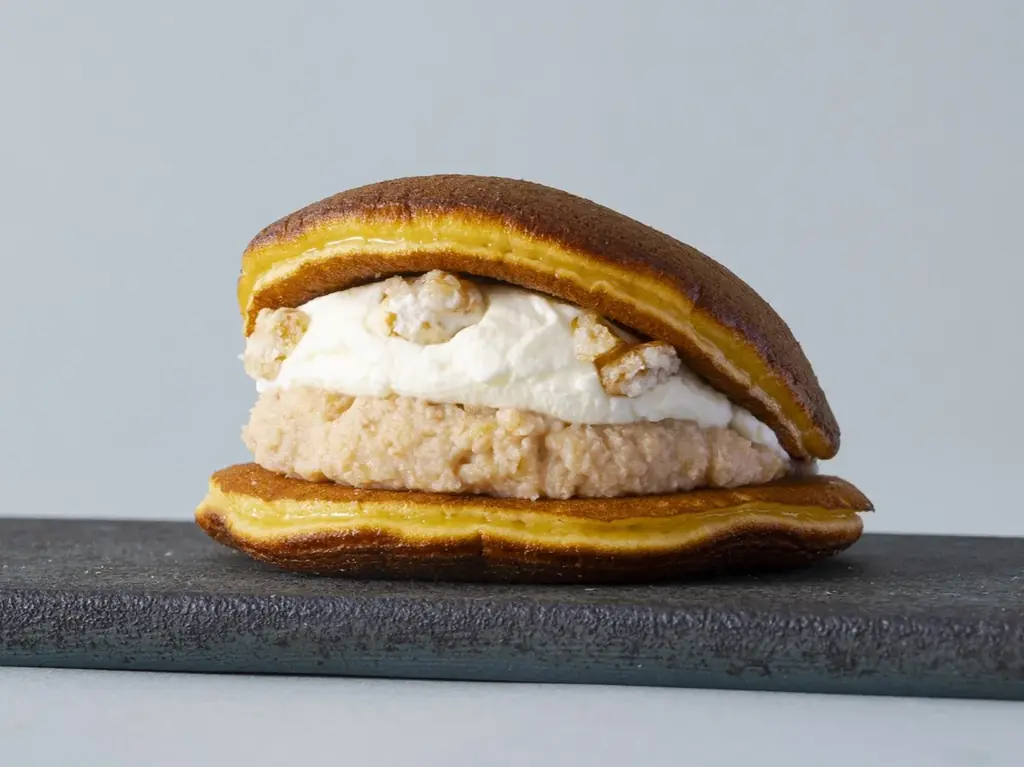 あずきマスカルポーネ | 560円 | 和洋折衷の定番生どらやき。職人が銅板で一枚一枚焼き上げる生地が特徴 |