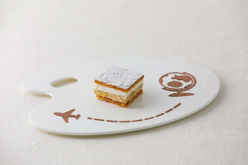 商品名はWAGURIクレームシュニテ。クロアチアの名物スイーツ「クレームシュニテ」を和栗で再構成したもので、一般的にカスタードクリームを挟む構成を、濃厚な和栗クリームと生クリームの2層にアレンジしている。