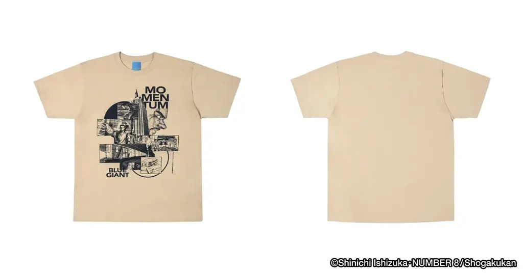 『BLUE GIANT EXPLORER』より、主人公・宮本大がアメリカで出会ったメンバーとの挑戦と成長を描いたTシャツ。価格:6,930円(税込)。サイズ:M, L, XL, XXL。 - BLUE GIANT Tee MOMENTUM