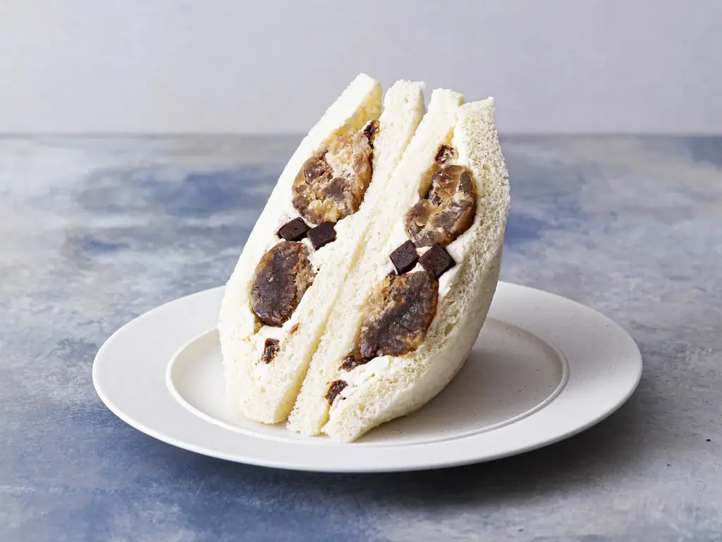 - マロングラッセのラムレーズン生クリーム:1パック 670円(テイクアウト)/682円(イートイン)/PREMIUM SAND+CAFĒ メルヘン(グランスタ東京/改札内B1 丸の内坂エリア)。マロングラッセとラムレーズンを合わせたサンド。