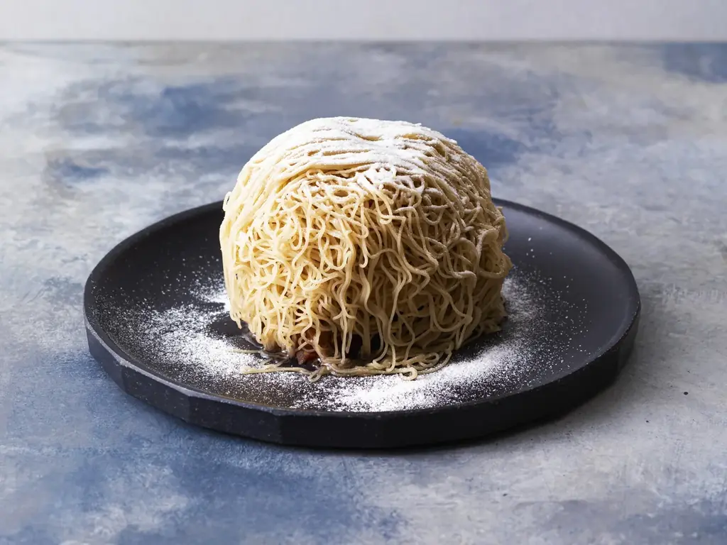 - モンブラン:1,012円(イートイン)/BURDIGALA TOKYO(グランスタ東京/改札内B1 銀の鈴エリア)。注文を受けてから和栗クリームを搾って提供。提供時間は10:00~19:00、数量限定、なくなり次第終了。テイクアウトは993円。
