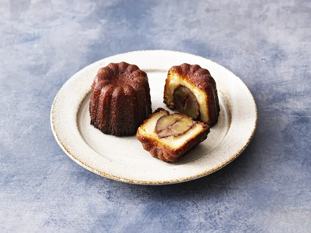 - 和栗の半熟カヌレ:470円/boB(グランスタ東京/改札内1F 京葉ストリートエリア)。毎朝焼き上げる朝焼きカヌレの新作で、外はカリッと中はトロッとした半熟食感。栗の渋皮煮を丸ごと1個入れる。数量限定。