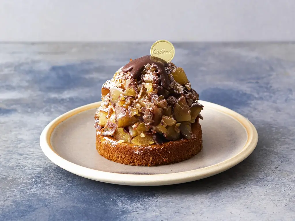 - マロンチーノ:1個 750円/カファレル(グランスタ東京/改札内B1 丸の内坂エリア)。マロン×ショコラのドルチェ。マロンペースト、チョコブリュレ、キャラメルクリーム、アーモンド生地、パッションフルーツの酸味がアクセント。数量限定。