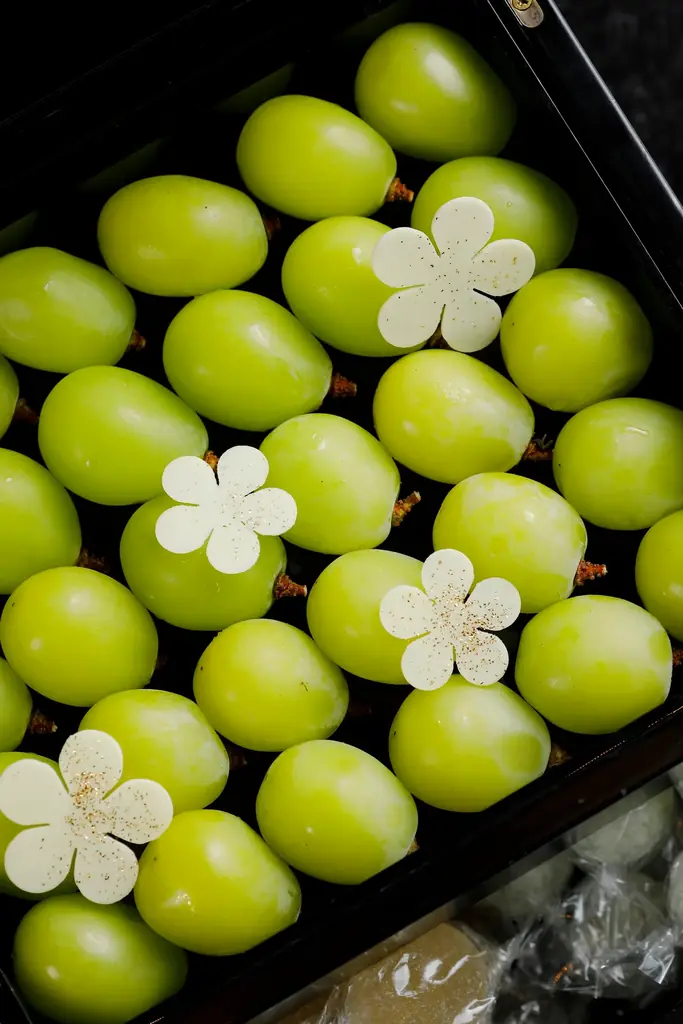 - ジュエリーボックス:シャインマスカット3粒、マスカットのトリュフショコラ、ライムのパートドフリュイ