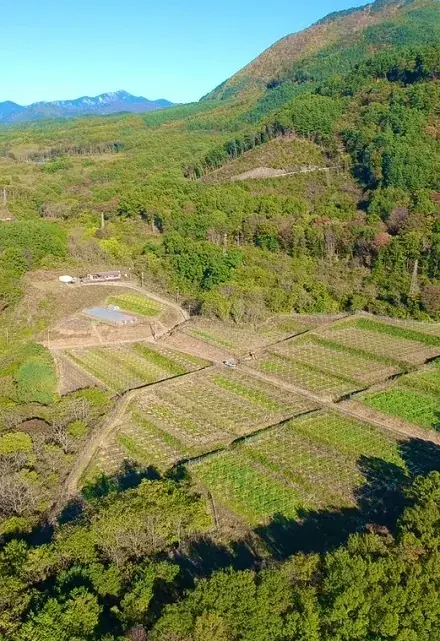 アマン東京が手がけるシャインマスカットの栽培プロジェクトは、2021年初夏に始動しました。栽培地は山梨県北杜市。澄んだ空気と豊富な日照に恵まれたこの地で、同ホテルのシェフたちが自社契約農園へ毎月足を運び、苗木の成長を見守り、土壌や枝の手入れ、実の管理などを丁寧に重ねてきました。
