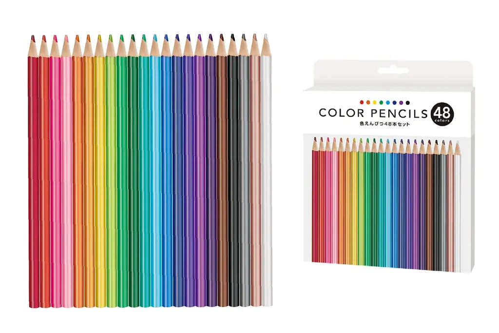 色えんぴつ48本セット | 丸型軸、48色のカラーバリエーション、ぬりえ向け | 9月 | ¥980 | 製品ページ |