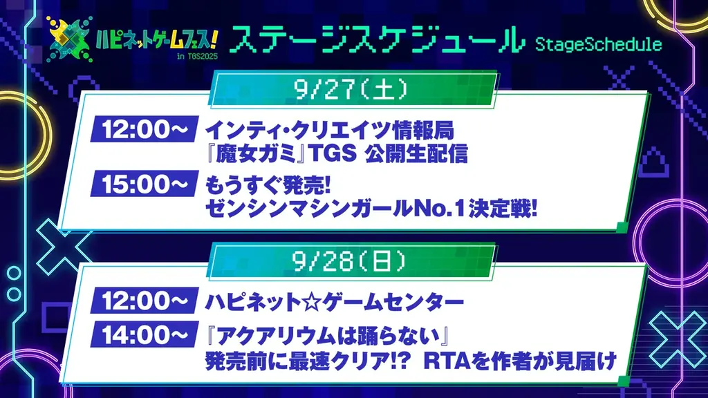 ステージ配信 | ハピネット☆ゲームセンター(9/28 12:00~13:00)ほか計4ステージ。YouTube・ニコニコで配信 |