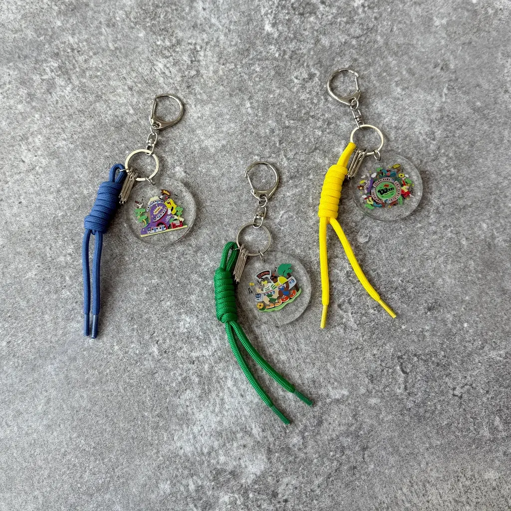 - 備考:アクリルにパラコードを組み合わせたチャーム。バッグや鍵に付けられるパーツ付きでキーホルダーとして利用可能。