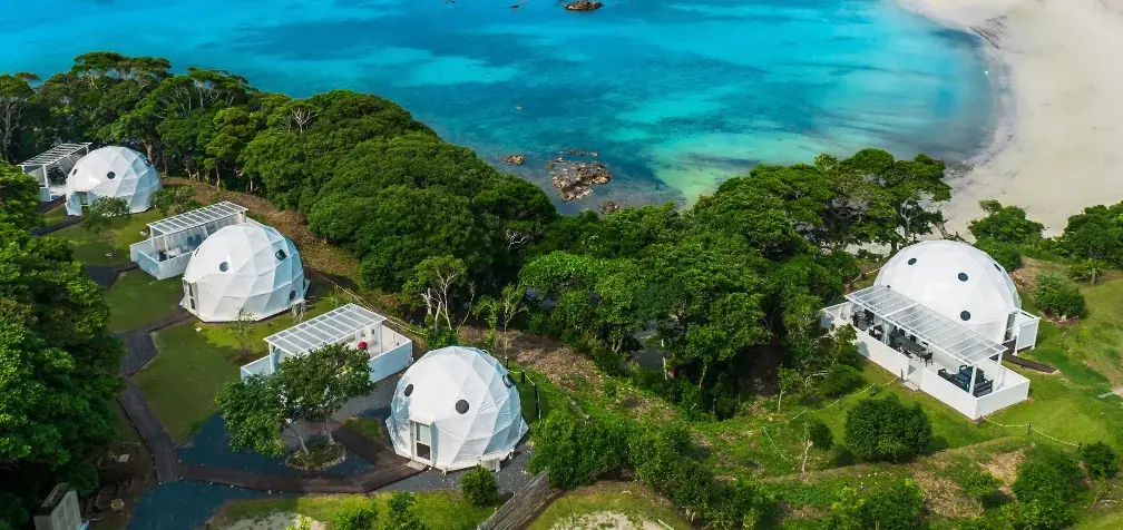 発表時点の施設構成として、御座白浜に隣接するシーサイドエリア内にドームテントが4棟設置されています。プランは素泊まりを含む複数の選択肢が用意されており、宿泊費を抑えつつ伊勢志摩の特産を活かしたお料理コースやマリンアクティビティ、亜熱帯サウナなど多彩な体験を手頃な価格で提供することが特徴です。問い合わせ先はinfo@luxuna2021.comで、施設の公式サイトは’https://luxuna2021.com/’、Instagramは’https://www.instagram.com/luxuna.iseshima’です。