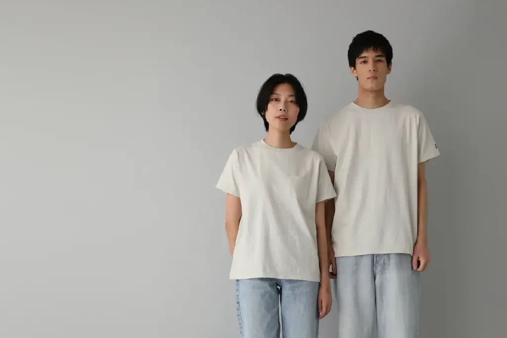 その糸を用いて編み立て、染色、刺繍まで丁寧に行うことで、長く愛用できる生地感を実現しています。製品としてはTシャツ、パーカー、シャツジャケットなどが用意され、各アイテムは糸から仕上がりまで手間をかけた作り込みが特徴です。
