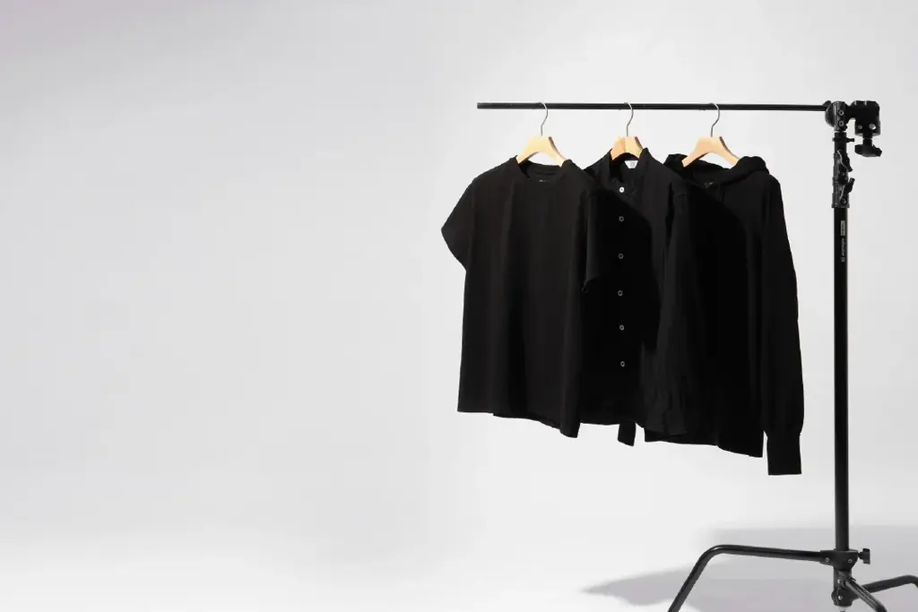 京都紋付は1915年から黒紋付の染色のみを手掛ける専門的な染屋で、着物の世界で培われた深黒加工(シンクロ加工)という独自技術により「和の黒」を追求してきました。今回の協業では、京都紋付が生む“究極の黒”を039LAUNDRYの生地に施すことで、独特の色味とテクスチャーを持つウェアが生まれます。