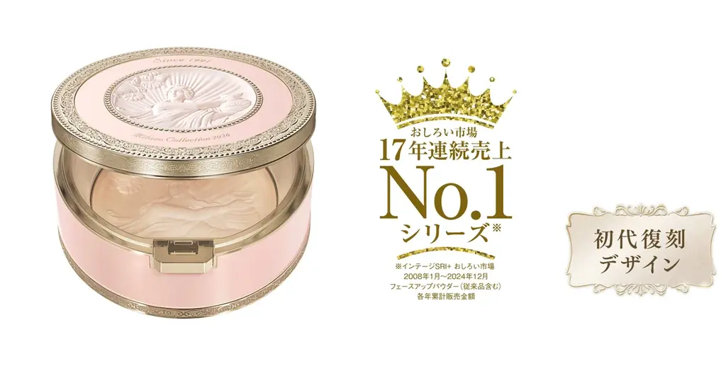 商品情報として、ミラノコレクション フェースアップパウダー2026は2025年11月22日(土)に数量限定で発売され、予約受付中と発表されています。ブランドは1991年に誕生し、西洋の芸術と日本のおしろい文化を融合した製品作りを続け、フェースアップパウダー市場において17年連続売上No.1(2008年1月〜2024年12月の累計販売金額、インテージSRI+調べ)を達成しています。