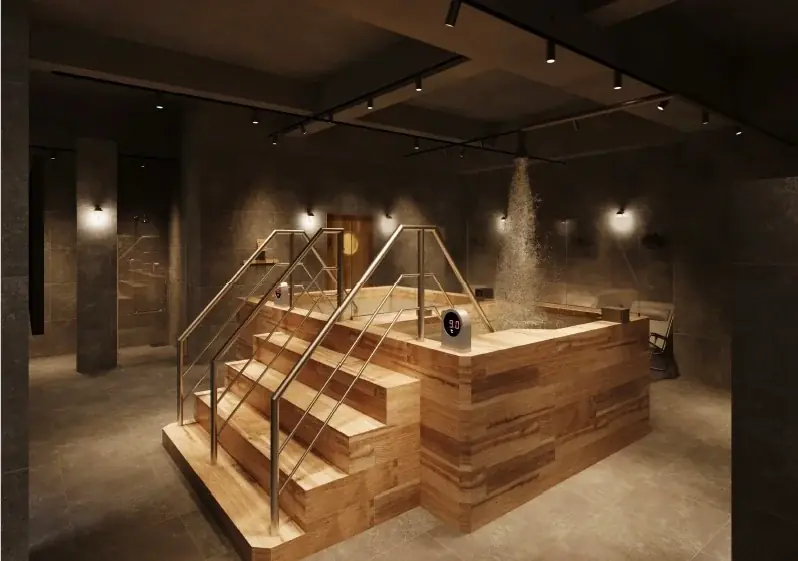 付帯設備としては、サウナ(メンズサウナは太田広氏による監修で、国内で初めて湯船を備えたサウナ)、24時間営業のフィットネスジム、インドアゴルフ、カラオケ、卓球などのアミューズメント施設が導入され、健康志向や中長期滞在のニーズにも対応している。
