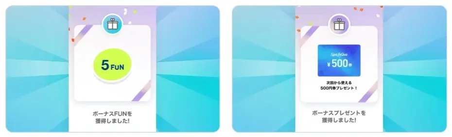 さらに、対象施設・店舗の利用回数に応じてボーナスFUNやボーナスプレゼントが付与される制度が設けられます。利用回数に応じたインセンティブとして、店舗ごとに設定された特典が提供されるため、常連利用者に対する還元が強化されます。