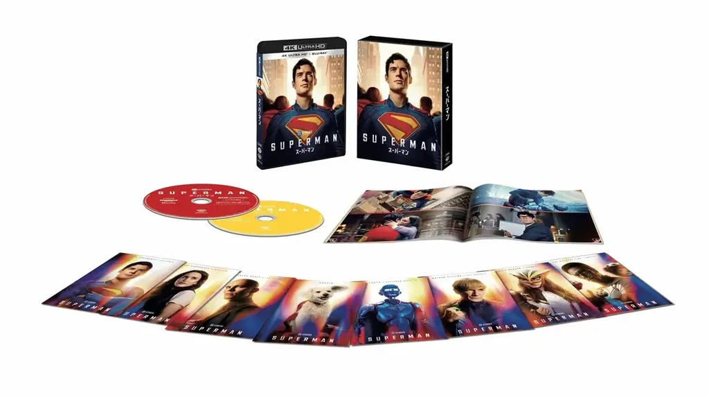 - 【初回仕様】スーパーマン 4K UHD+ブルーレイ セット(ペーパープレミアム付):発売日 11月19日、価格 9,350円(税込)、品番 10008-57462。 本編約129分+映像特典約114分、2枚組。
