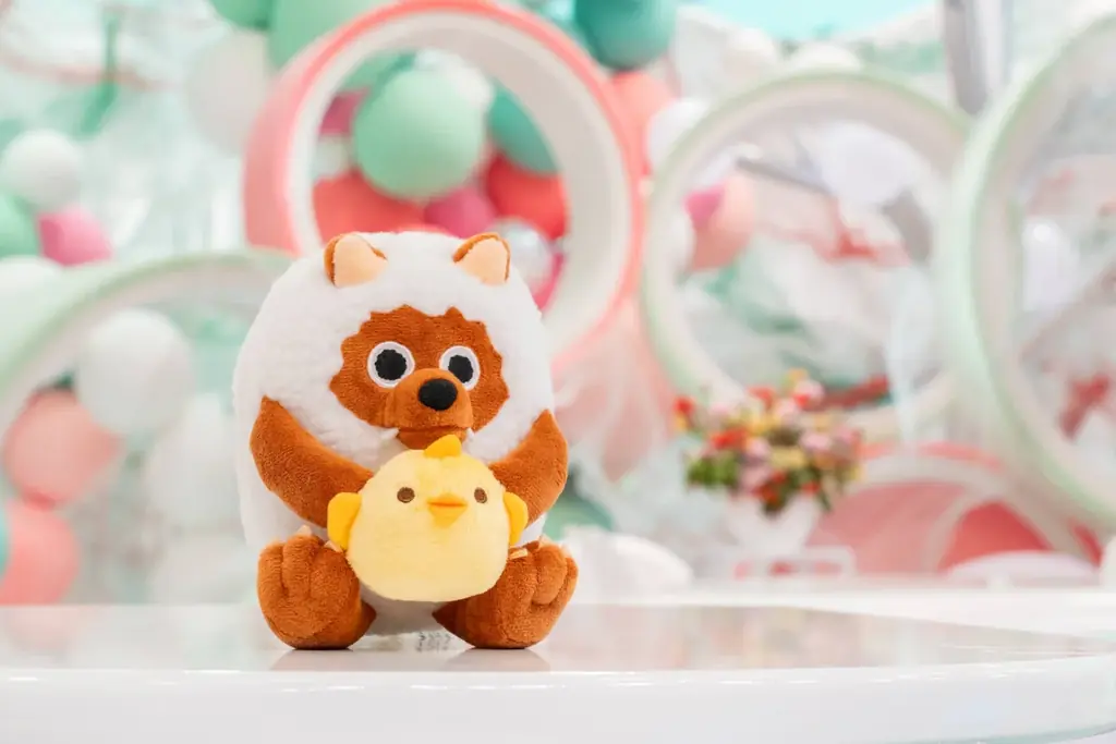 『ドデ祭2025』会場内のドデ商店では、当社販売品とは別に「ウルフィ×ぴよりん だっこぬいぐるみ」などのコラボ商品も販売されます。だっこぬいぐるみはウルフィがぴよりんを抱っこしたデザインで、会場限定の取り扱いとなる場合があります。