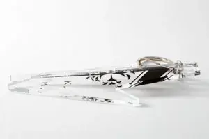 今回のキーホルダー開発には、アクリル製造の専門メーカーの協力があり、什器やショーケースの加工で用いられる「アクリル曲げ技術」を一般グッズに応用した点が注目されます。これにより、平板なアクリルを曲げて立体的なラインを作り出し、作品デザインにある微細な形状を忠実に再現しています。
