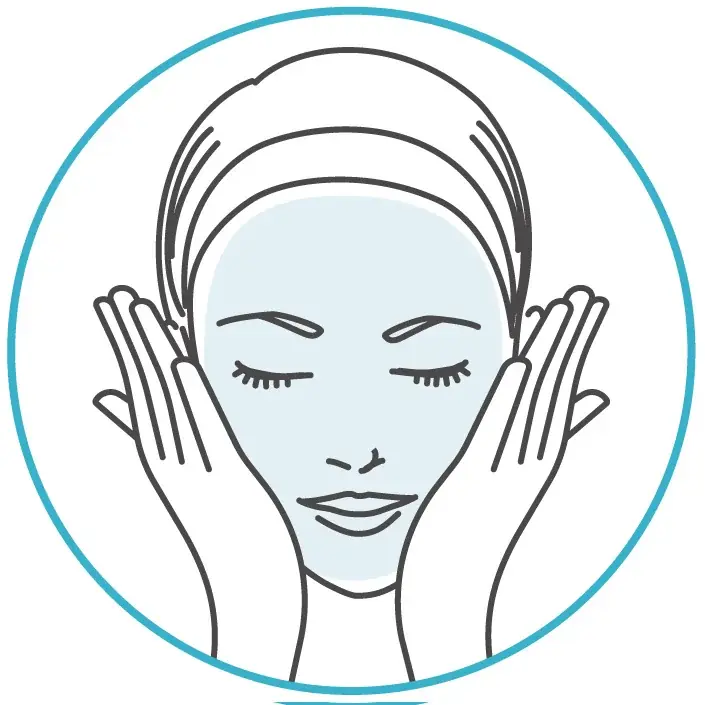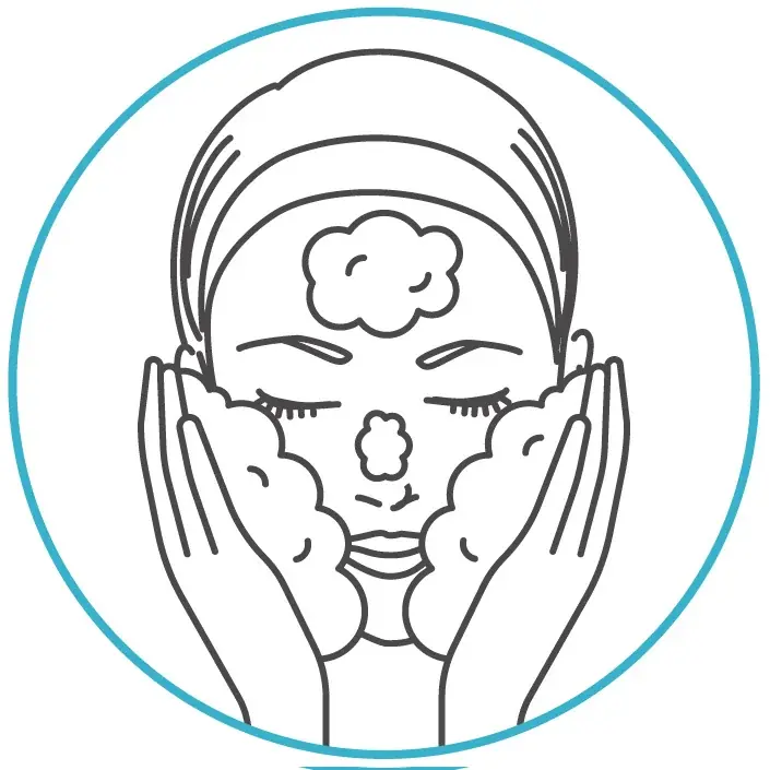 マッサージ後、少量の水またはぬるま湯で泡立てながら顔全体を洗い、充分に洗い流します。