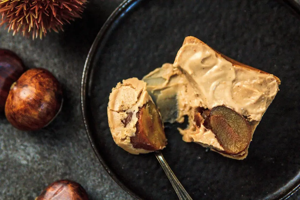 とろ生マロンチーズケーキにおける素材選定は、一つひとつに意図があります。北海道産素材はミルキーさと風味の厚みをもたらし、ヨーロッパ産のマロンペーストは栗本来の香りと旨味を強く出すために選ばれています。