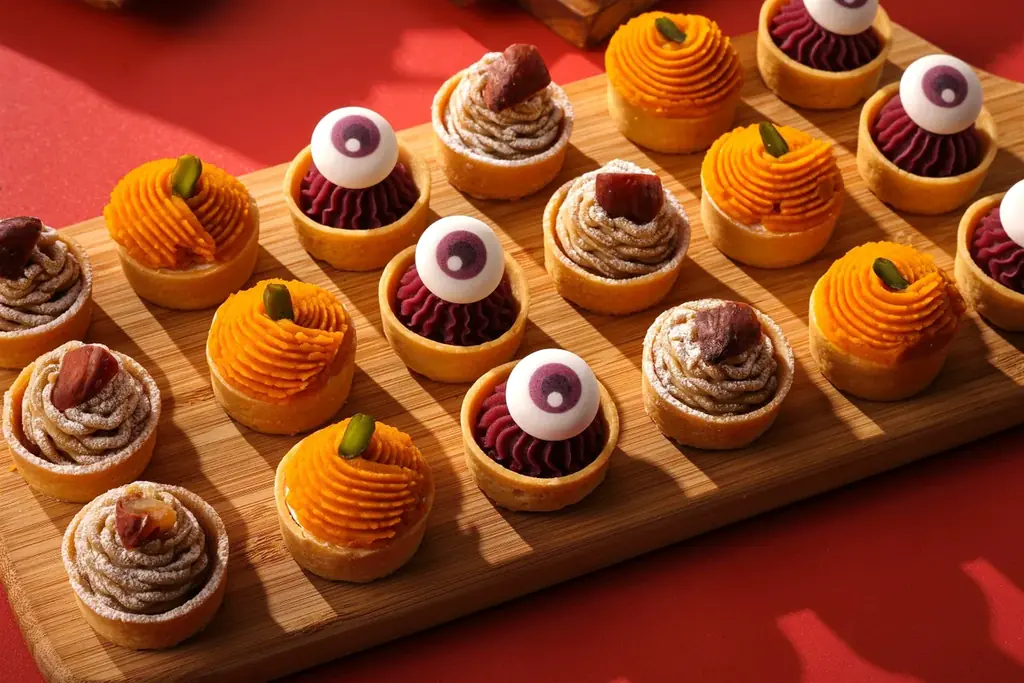 - プティタルト(栗・パンプキン・紫芋):3種のペーストをたっぷりのせた一口タルト。食べ比べに適したビュッフェサイズ。