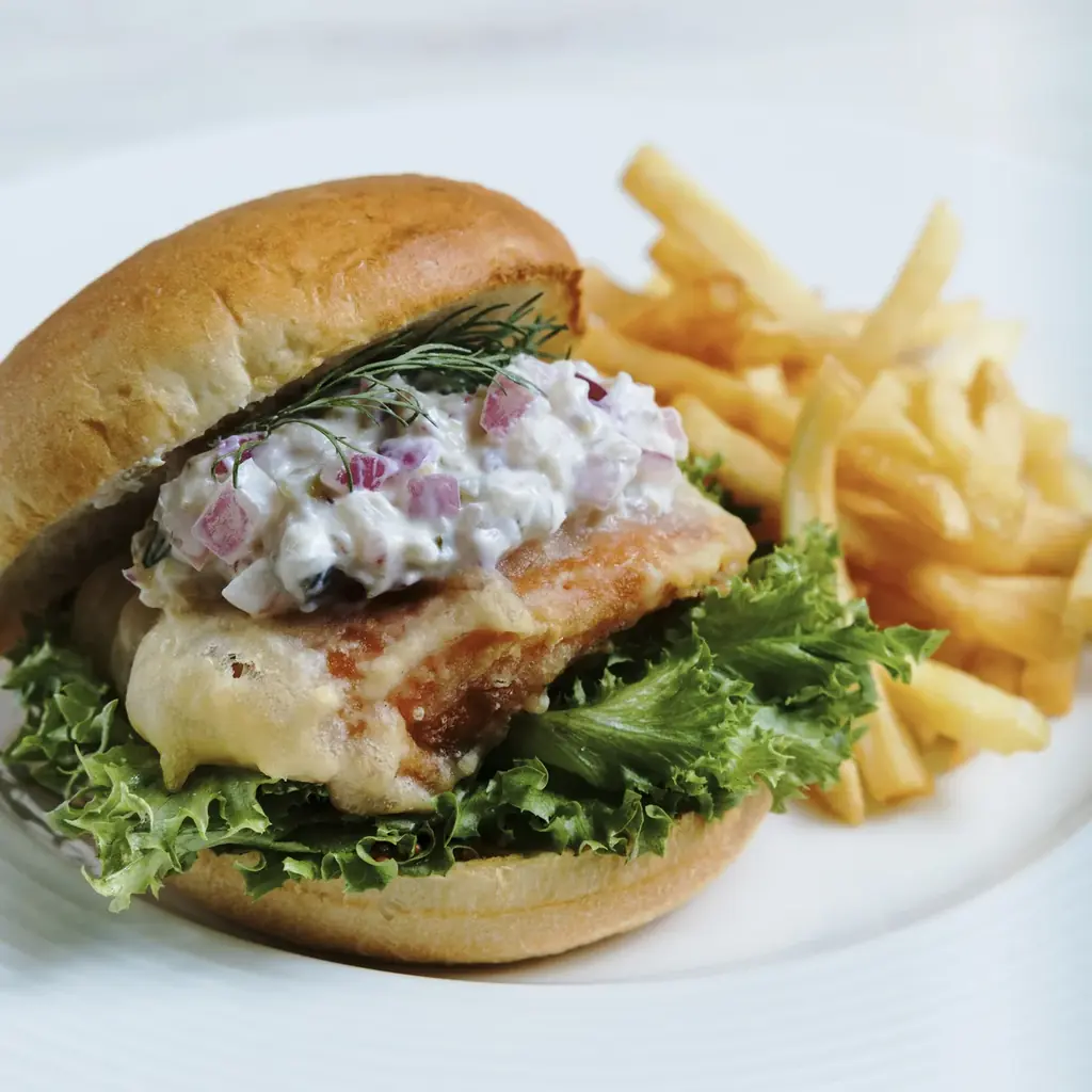 提供メニュー | オリジナルドリンク、サーモンタルタルバーガー、ハニーマスタードチキンと洋梨・巨峰のケールサラダ(ベルガモットドレッシング)、ほうじ茶ババロアと紅茶のジュレのミニパフェ、スパイスチーズケーキ、ウード・アコードティー |