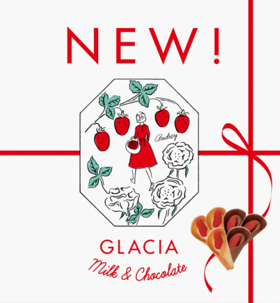 リニューアルされたグレイシアは、ラングドシャ生地とチョコレートクリーム、フリーズドライいちごの組合せを基本とする2種類のフレーバーで展開されます。食感と甘さの調整は商品ごとに最適化され、全体として〈サクッ、ほろっ〉という触感が強調されています。