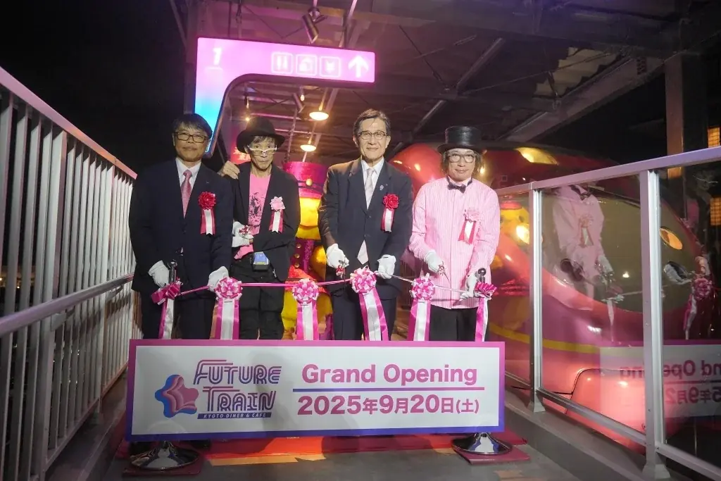 京都・梅小路エリアに新たな観光とカルチャーの拠点として誕生した列車型エンタメレストランFUTURE TRAIN KYOTO DINER & CAFE(以下、FUTURE TRAIN)は、2025年9月20日(土)にグランドオープンします。これに先立ち、グランドオープン2日前の2025年9月18日(木)に、松井孝治京都市長ら関係者が出席して出発式が執り行われました。