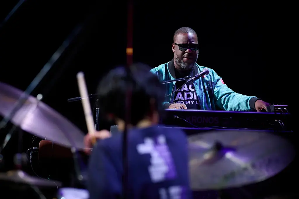 後半の主役の一人、ロバート・グラスパーはベース、ドラム、DJを従えた4人編成で「Find You」を披露。その後石若が加わりツインドラム編成で「Rise and Shine」を演奏。公演で最も白熱したシーンのひとつに数えられる、ジャスティン・タイソンとのドラム対決が見られた。