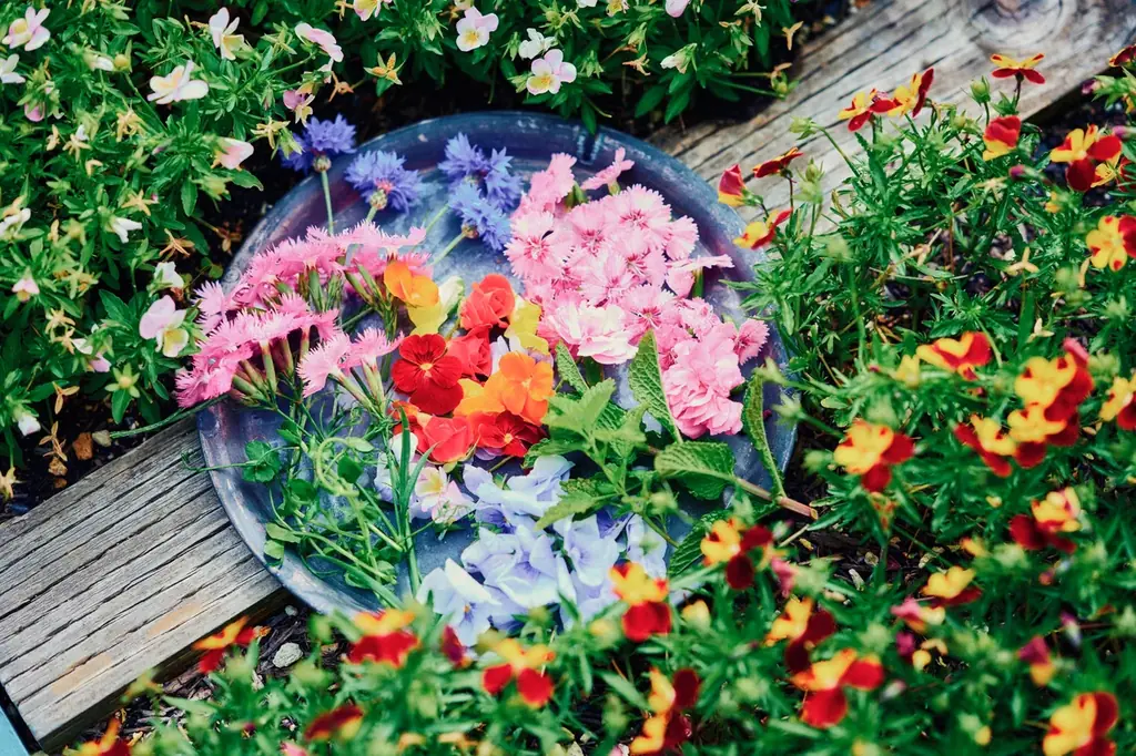 ガーデン内では収穫や装飾に使われるエディブルフラワー(朝摘みの食用花)を前菜やデザートに活用するなど、ガーデンの恵みをダイレクトに感じられる工夫が施されています。