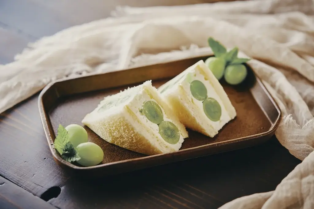代表的なメニュー(2F) | 季節のクリエーション ¥1,830、フルーツサンド(シャインマスカット13個)¥2,040、ケーキ各種 ¥850~¥1,050、シャインマスカット入りスパークリングワイン ¥1,230 |