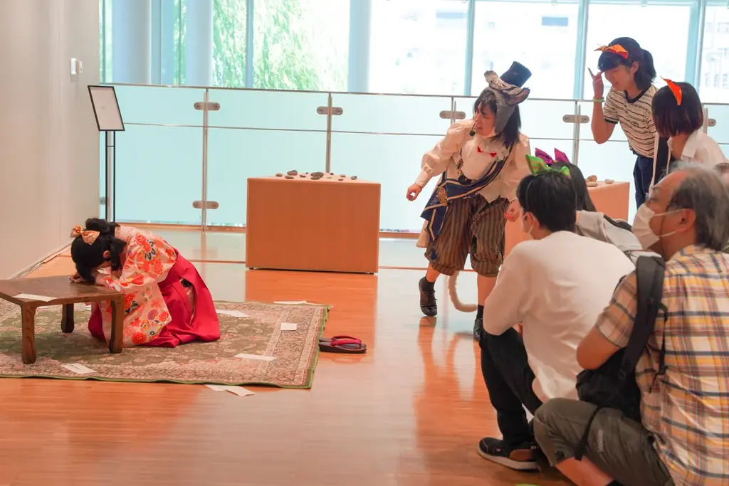 公演はロビーのようなコンパクトな空間でも開催でき、観客の着替えを役者が手伝うなど運営面での配慮も想定されています。舞台的演出と観光案内を一体化させることで、展示物の解説が自然な物語の文脈として伝わる点が特徴です。