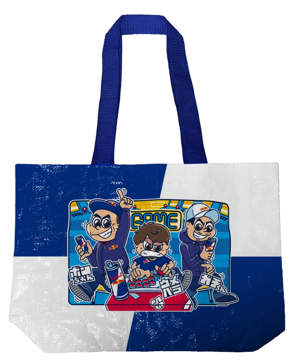 配布されるバッグのデザインは、レッドブルに関連するプレイヤーやバーチャルアンバサダーのビジュアルを用いたものです。配布は先着順で、賞品が無くなり次第終了します。詳細な条件は各実施店舗およびオンラインストアの案内に従ってください。