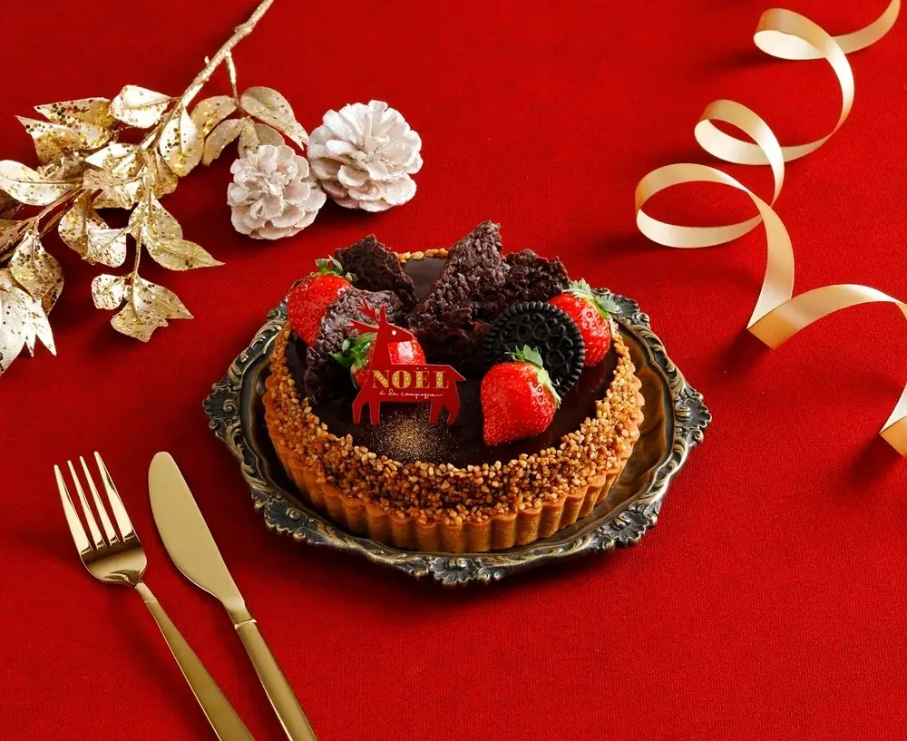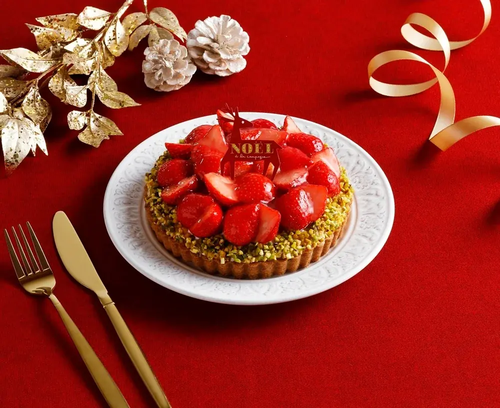 コンセプトは「赤い実りが織りなす、あたたかな季節」。南フランスの温もりを感じさせるイメージのもと、旬の苺や各種ベリーを贅沢に用い、パティシエの手仕事で仕上げるタルトやショートケーキを揃えました。大切な人と分かち合う、やさしいクリスマスを想起させるラインアップが特徴です。