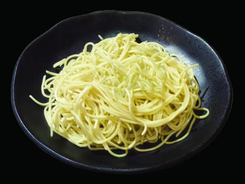 - 数種類の小麦粉を独自配合した特製麺で、スープとの絡みが良い設計