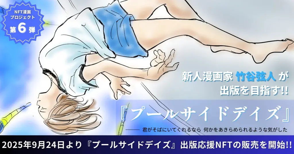株式会社CAICA DIGITAL(子会社:株式会社カイカフィナンシャルホールディングス)は、漫画家・竹谷弦人による新作『プールサイドデイズ』の出版支援を目的としたNFT販売を、審査制NFT販売所「Zaif INO」にて2025年9月24日(水)より開始すると発表しました。発表は2025年9月22日 15時33分に行われています。本作は「NFT漫画プロジェクト」の第6弾作品として位置づけられ、実業之日本社 ライツ・事業開発部および実業之日本デジタルと協業して実施されます。