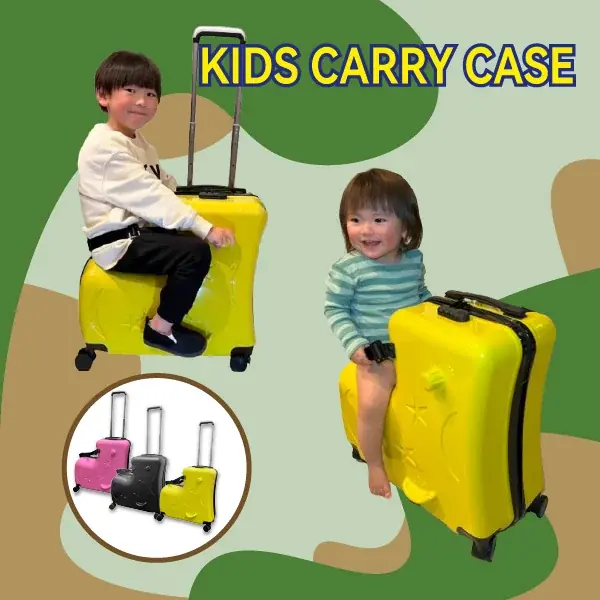 FG-KIDSCASE01(乗れるスーツケース) | 販売ページで確認 | 容量約35L、重量約3.2kg、耐荷重約40kg、仕切り付き | 商品ページ |