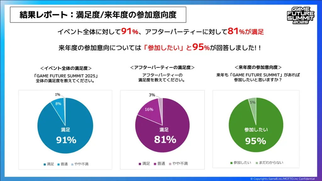 - 「ゲームビジネスに関心の高いマーケター、開発者、経営者が多く参加している国内唯一のビジネスイベントだと感じた」