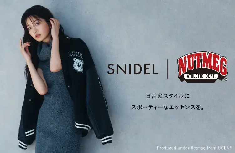 本コラボレーションは、1980年代からアメリカの大学やスポーツチームのライセンスグッズ制作に関わってきたNUTMEGのカレッジスタイルと、SNIDELの「ストリート×フォーマル」コンセプトを融合させた内容で、スウェットやスタジャン、MA-1など全4型がラインナップされる。公式オンラインストアおよびECデパートメントストア、全国のSNIDEL店舗での販売が予定されている。
