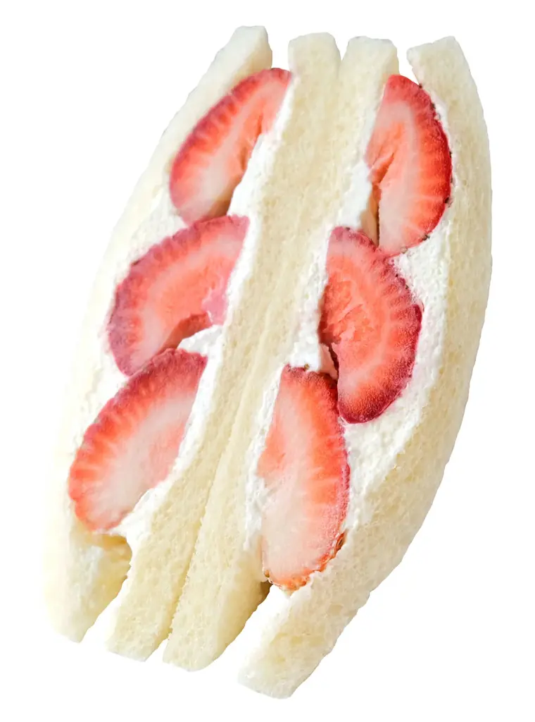 - フルーツサンドには乳脂肪100%の純正生クリームを使用し、果物の味を引き立てる。